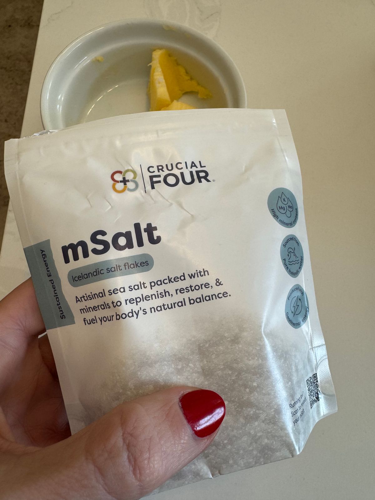 "I love Crucial FOUR's Icelandic Salt, not only is it tested for heavy metals and microplastics, it’s the tastiest, nutrient-dense salt I have ever had. I love adding a pinch in my water to keep my electrolytes balanced and be hydrated in the best way!"